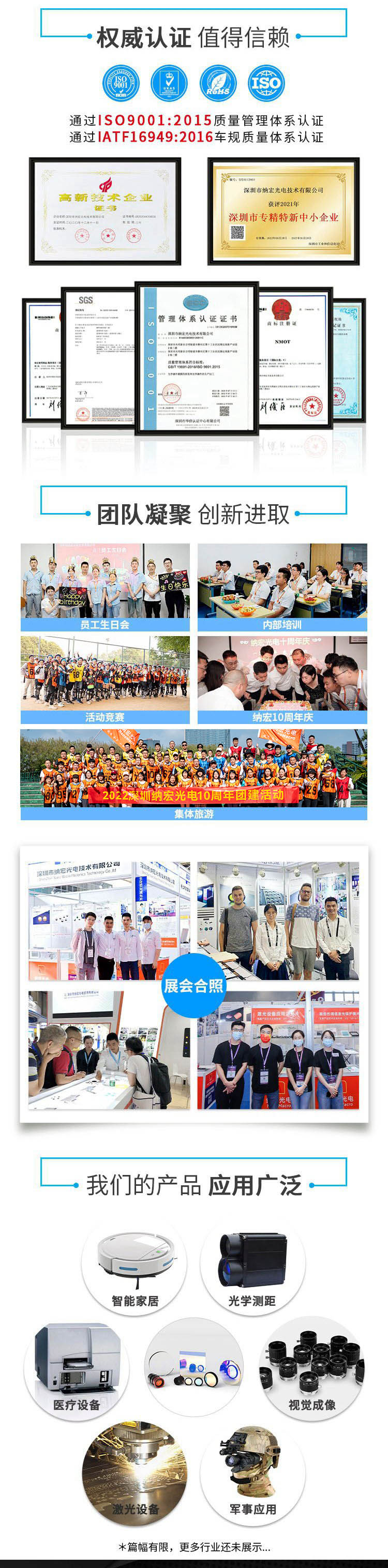 深圳納宏光電致力于成為一家擁有高效管理團隊、優秀的光電工程研發人員、良好的售后服務體系為一體的精密光學濾光片制造商。