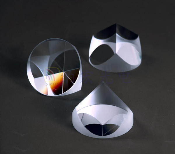 1.三個反射工作面相互垂直,底面是一等邊三角形,為光學棱鏡的入射面和出射面。